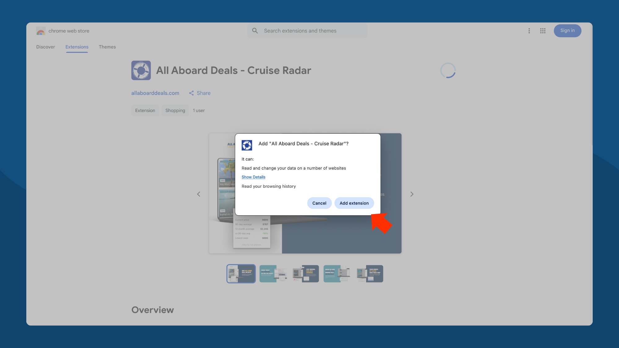 Go to the Chrome Web Store listing for Cruise Radar and click Add to Chrome.
