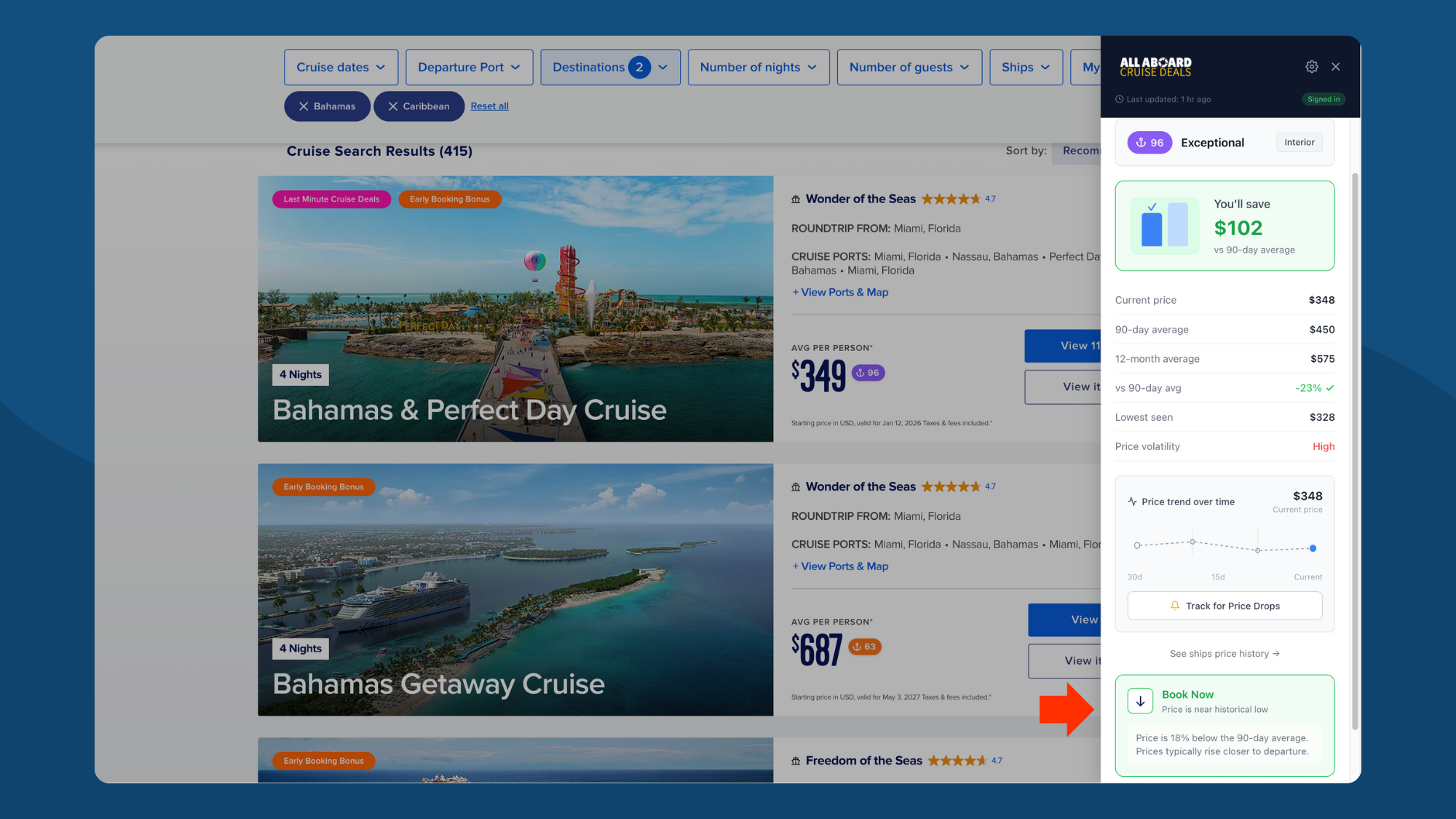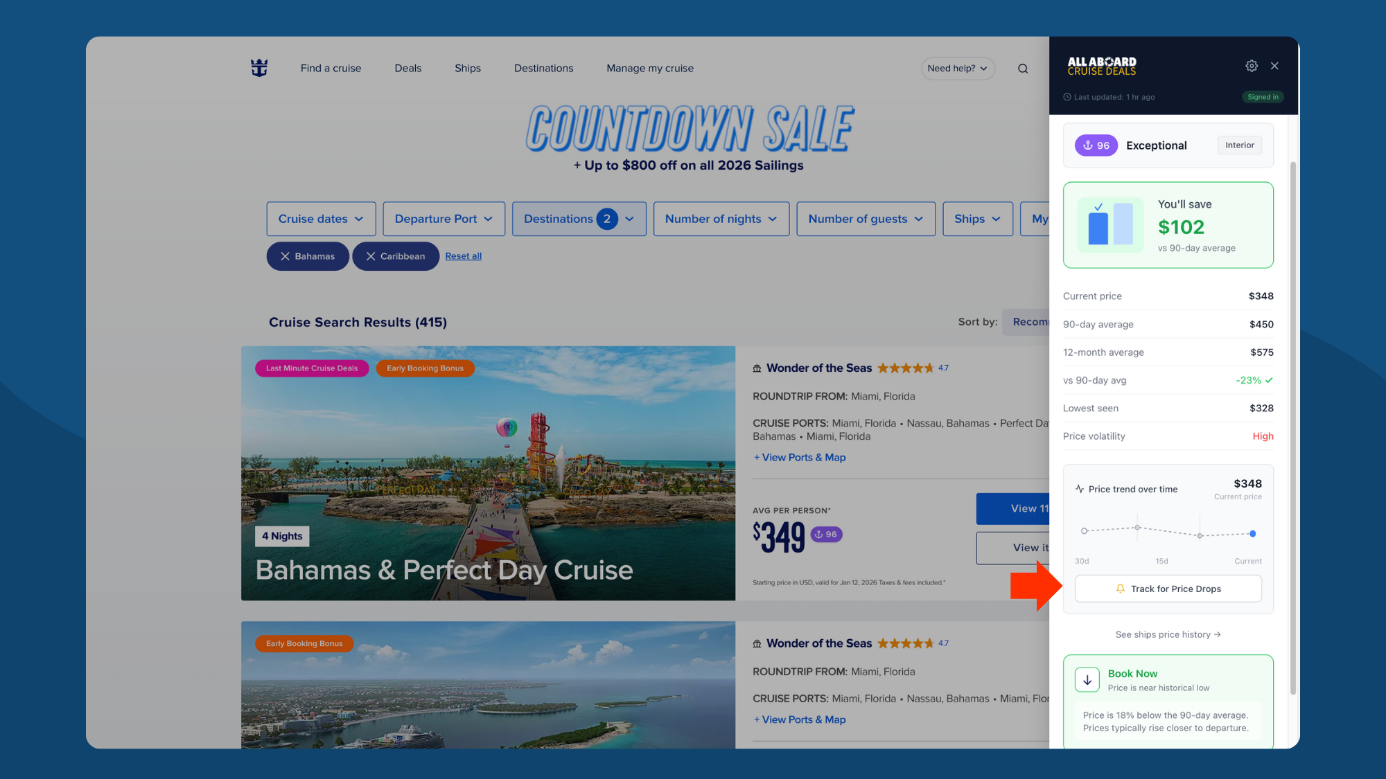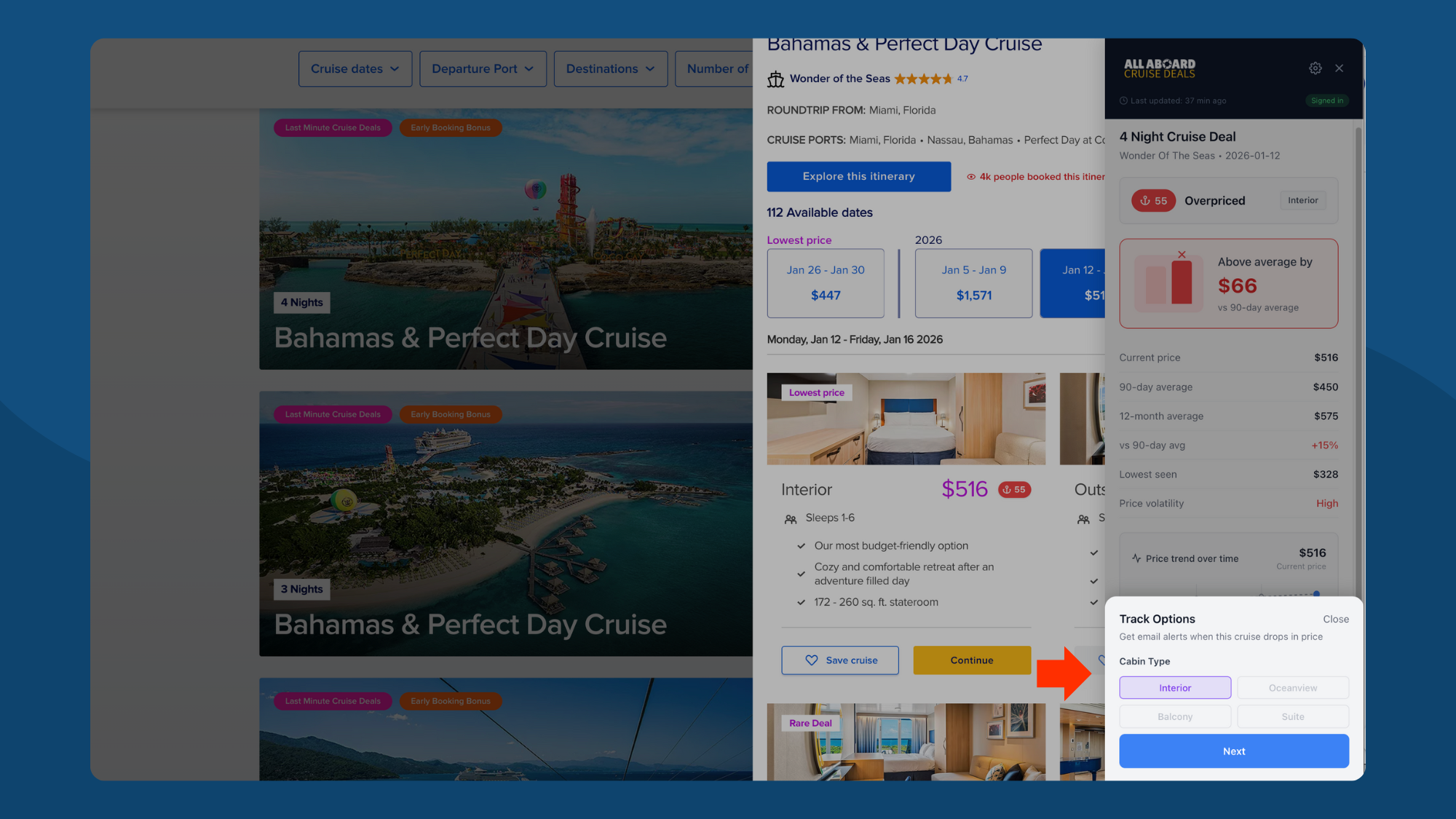Found a cruise you like but not ready to book? Track it for price drop alerts.