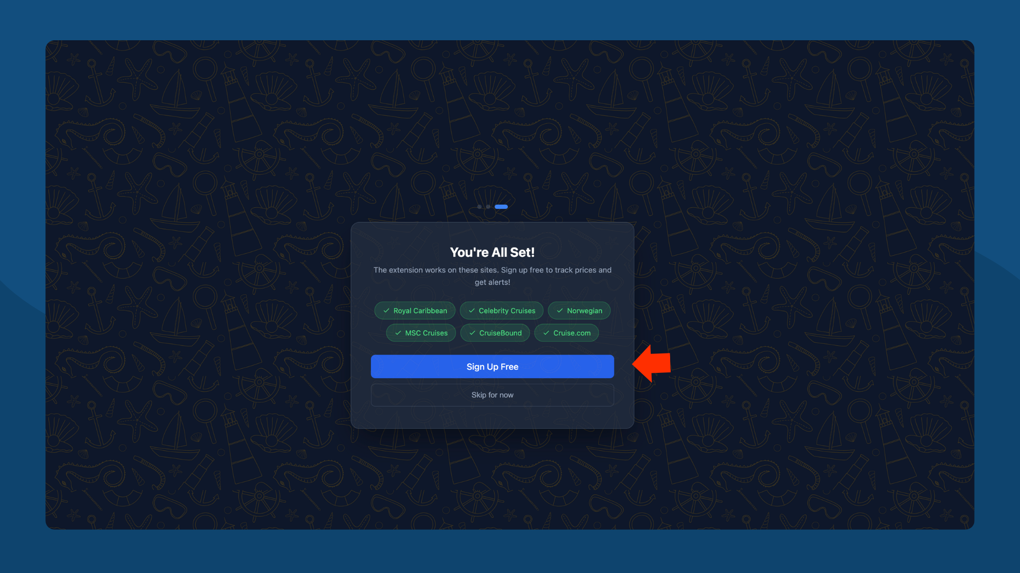 Click Let's Get Started to continue. The next screen shows all the cruise sites where Cruise Radar works: